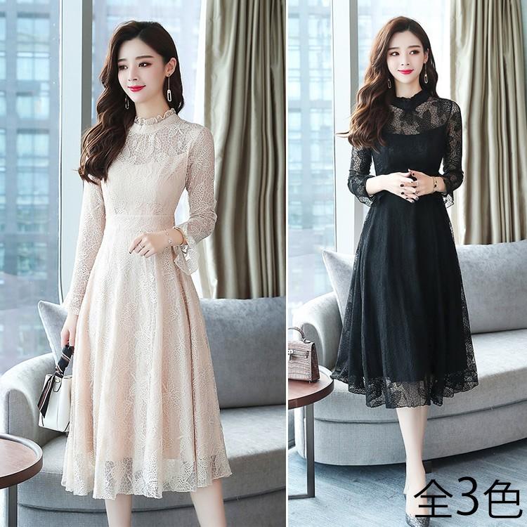 全2色 ワンピース ドレス 総レースワンピース フォーマル レディース ドレス 透け感 花柄 刺繍 フラワー デザイン ハイネック 段レース 白ワンピース 長袖 無地 オシャレ エレガント 上品 ミモレ丈 レース 結婚式 パーティードレス 大きいサイズ aライン ホワイト
