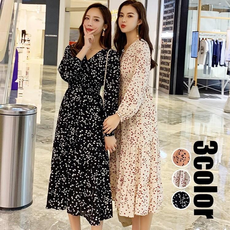 ワンピース ロング丈ワンピース レディース 春秋 オシャレ 長袖 ハート柄ワンピース カジュアル シフォン パーティー 結婚式 発表会 演奏会 3色 y491246 fairyhouse 通販 yahoo ショッピング