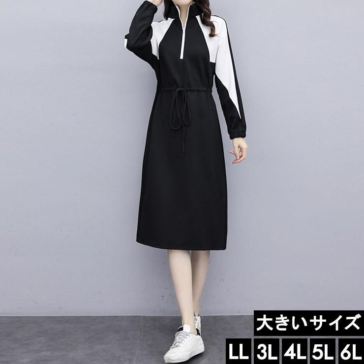 amazon co jp 大きいサイズ レディース 配色ワンピース 襟付きワンピ バイカラー 黒 ll 3l 4l 5l 6l 18151 ブラック 5xl 服 ファッション小物