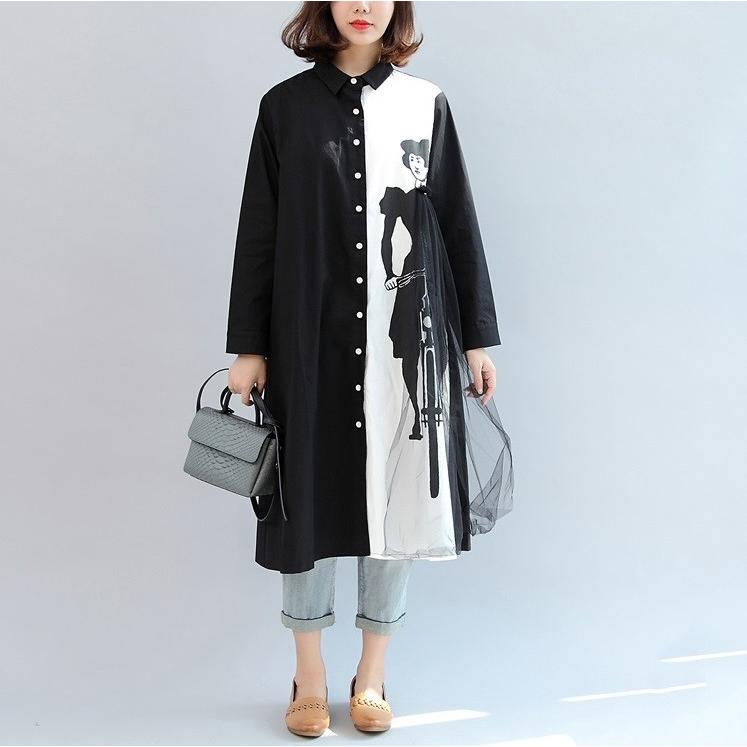春服 限定商品 モード系 バイカラー ロングワンピース 白黒 ツートーン オシャレ ウエストマーク チュニック 個性的 パーティー 目立つ
