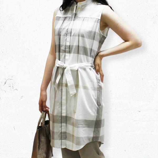 バーバリーブリット burberry brit チェック ノースリーブ シャツ ワンピース ベルト付 ミネラルグレー レディース 3968360