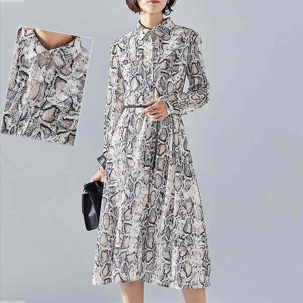パイソン柄ブラウスワンピース ひざ下丈 大人っぽい蛇柄プリント