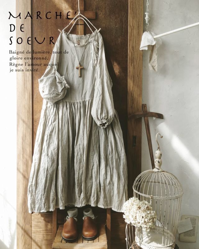 パフ袖ギャザーシャツワンピース dp36