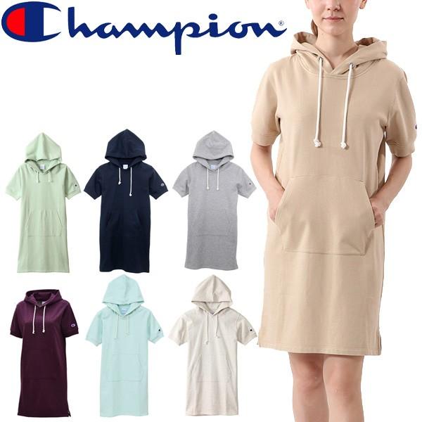 楽天市場 champion チャンピオン 半袖 フード パーカー ワンピース cw p107 レディース パーカーワンピース スウェットワンピース 半袖 ワンピース 春ワンピース スウェット 春夏 夏 膝丈 ひざ丈 カジュアル シンプル 無地 白 ホワイト グレー ネイビー ロゴ ワイド