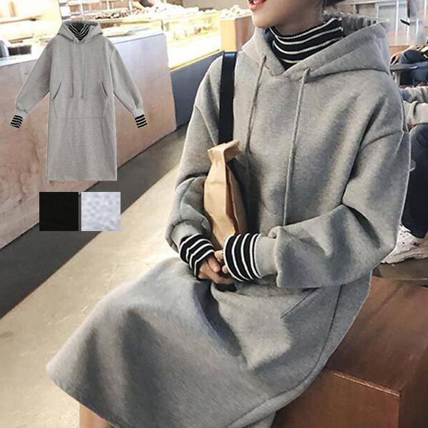 パーカーワンピ ミディアム 膝丈 ミモレ丈 ワンピース スウェット ロングトレーナー 長袖 フード付き レディース 無地 シンプル 黒 秋 冬 おしゃ top 82026 おとりよせ com 通販 yahoo ショッピング