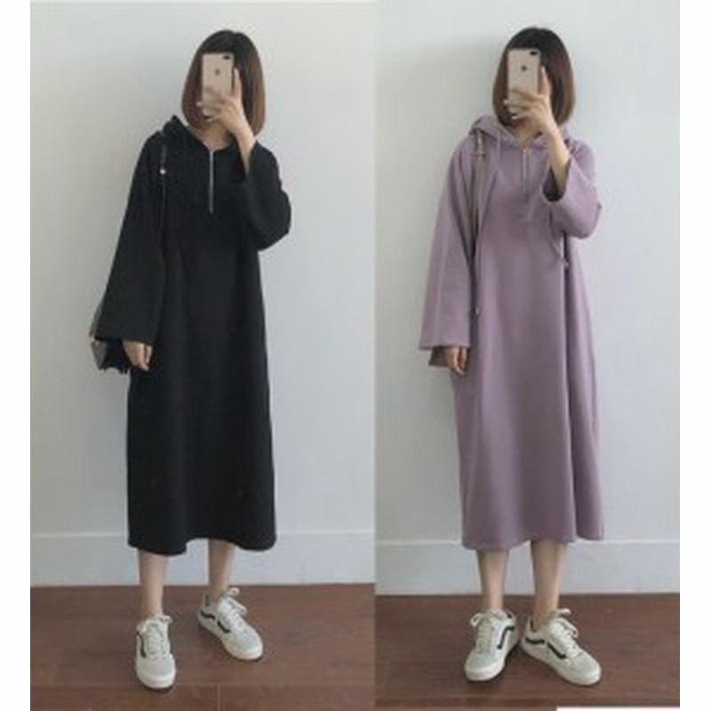 パーカー ワンピース ロング丈 スウェット 2color カジュアル 双子コーデ 韓国 オルチャン レディースファッション 通販 cocotown