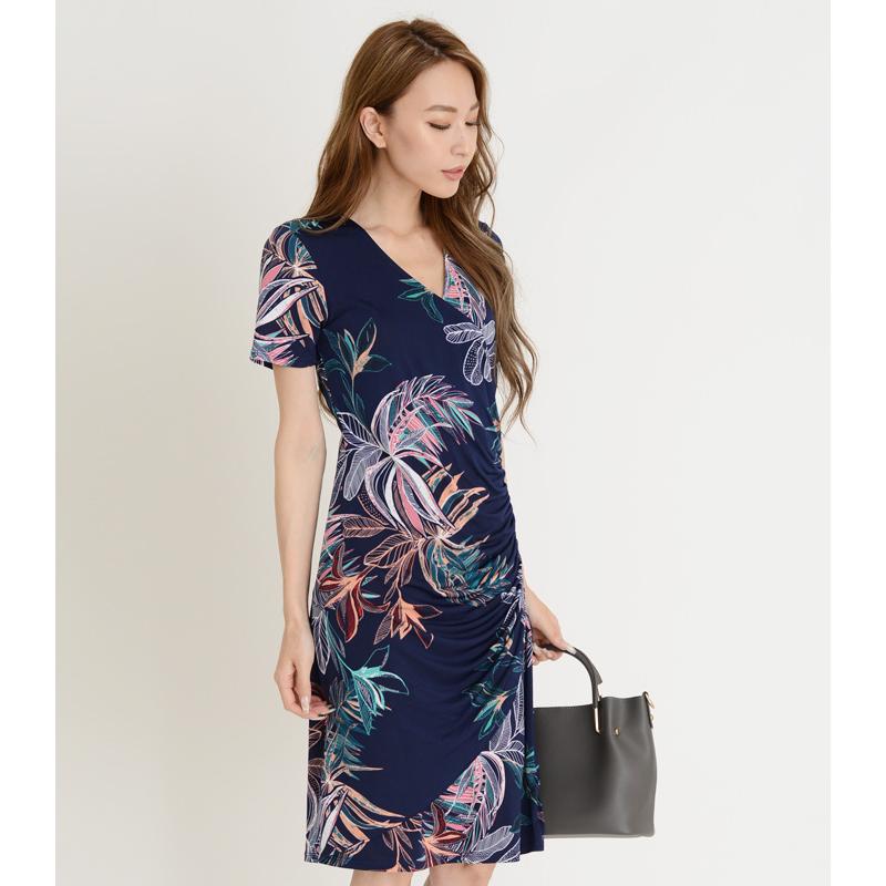 楽天市場 パープルレイン purple rain ワンピース 春夏新作 送料無料 アメリカ la インポート laワンピース 大人かわいい ジャージ素材ワンピース 半袖ワンピース カシュクール ギャザー フラワー柄 ステラ ファッション 大人ワンピース ワンピース