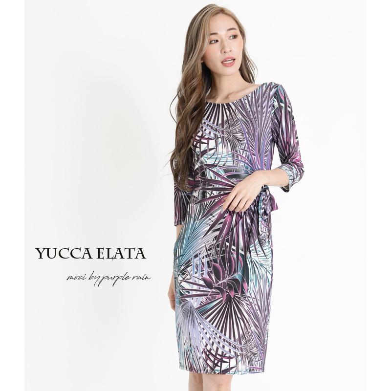30代40代50代 きれいめ 秋 ジャージー お家洗濯可 アメリカ製 タイトワンピース laインポート ペタルヘムフラワープリントカシュクールタイト ワンピース 膝丈 パープルレイン purple rain 7分袖 レディース 花柄 creditconseilpro fr