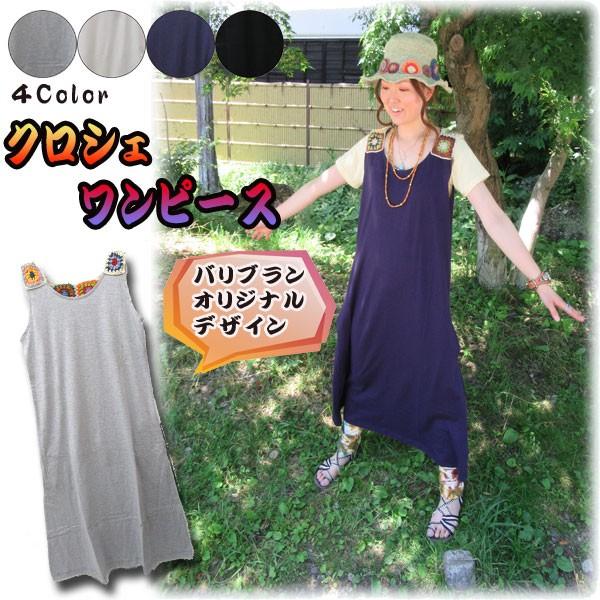 クロシェワンピース ヒッピーワンピース アジアンワンピース 無地 フリー ワンピース エスニックワンピース エスニックファッションバリブラン