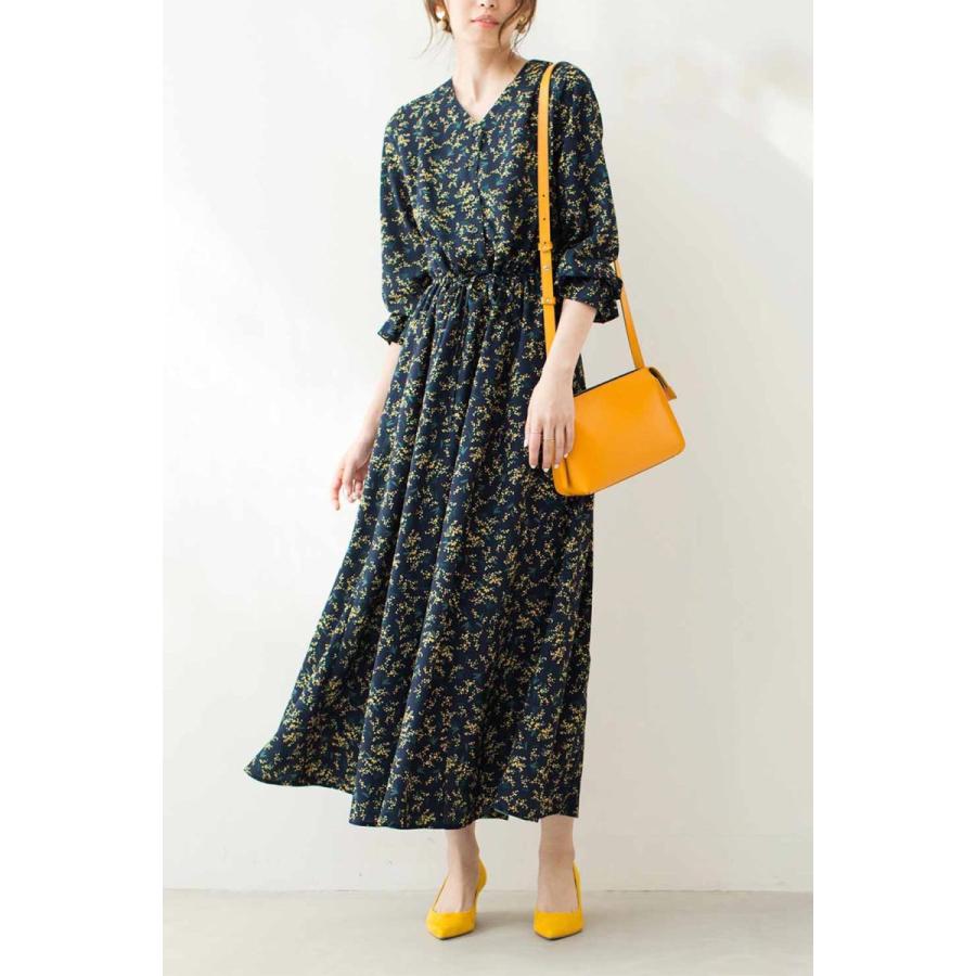 フェリシモ リブ イン コンフォート コットン素材がうれしい 風をはらむ柄ワンピース ボタニカルフラワーグリーン フェリシモ paypayモール店 通販 paypayモール
