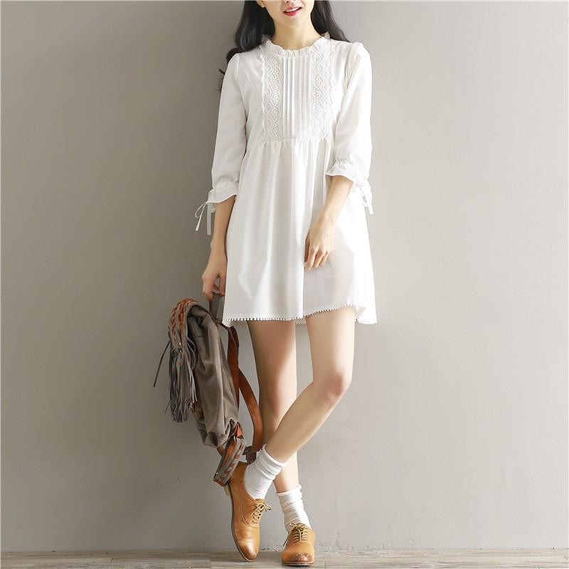 レース ブラウスワンピース 白ワンピース 森ガールワンピ ワンピース 5分袖 可愛い 膝上丈 無地 高品質 通勤 大人 上品 ゆったり zhz18011089 中天売店 通販 yahoo ショッピング