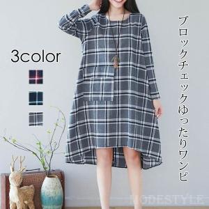 コットン リネン ブロック チェック ワンピース aライン チュニック スラブ 綿 麻 ブロックチェック 大きいチェック シャツ 春 夏 秋 半 au pay マーケット