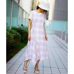 earth music ecology フレンチリネンブレンドブロックチェックワンピース