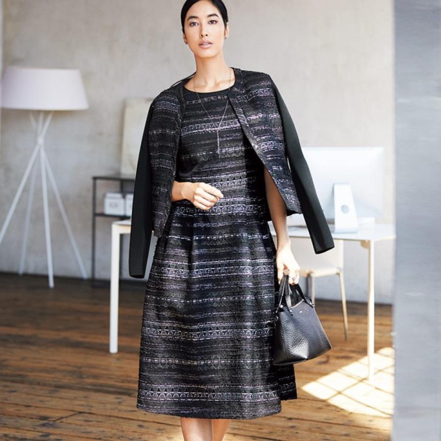 ファッション ワンピース チュニック プリント 柄ワンピース マリア ケント社 ラメ ファンシーツイード ワンピース 218503 ディノス paypayモール店 通販 paypayモール
