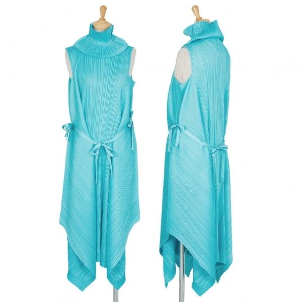 プリーツプリーズpleats please プリーツフレアシルエットノースリーブワンピース 水色m位 レディース