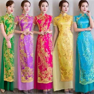 チャイナドレス風 ワンピース アオザイ ベトナム 民族風 ロングドレス ワンピース 花嫁 謝恩会 デート お呼ばれ m l 3l 4l チャイナ風服 basecamp8849 powered by base