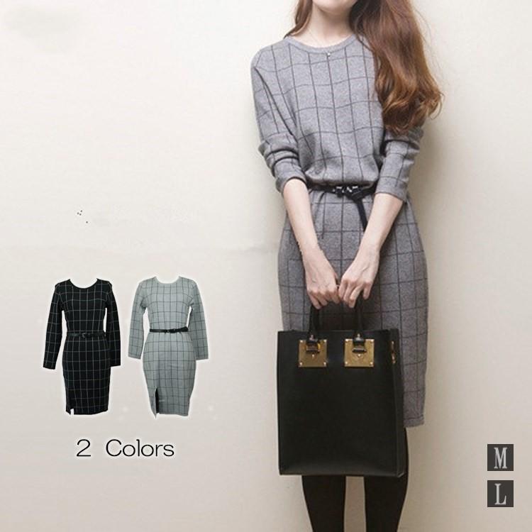 ベルト付きニットワンピース ワンピース ベルト付き ニット レディース 長袖 韓国ファッション タイト プリーツ きれいめ 上品 秋 冬 春 新作 ニットワンピ ブラック ベージュ onemorning