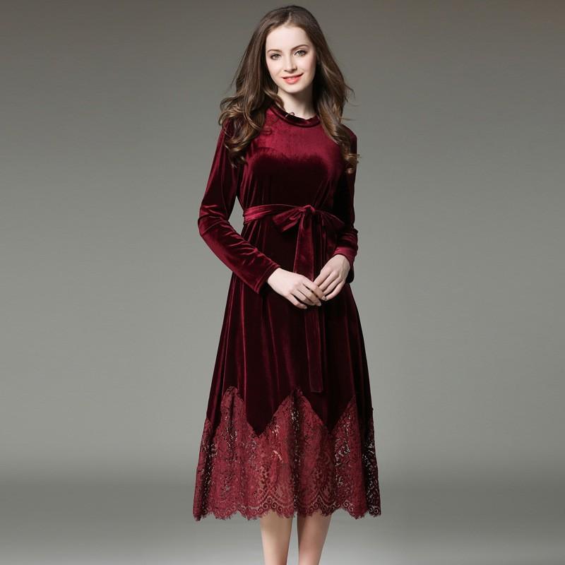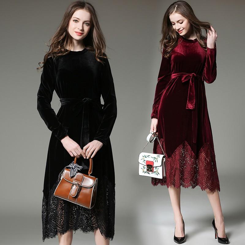 ベルベット ワンピース 結婚式 パーティードレス 二次会 フォーマル レース 膝丈披露宴 お呼ばれ 大人 good clothes