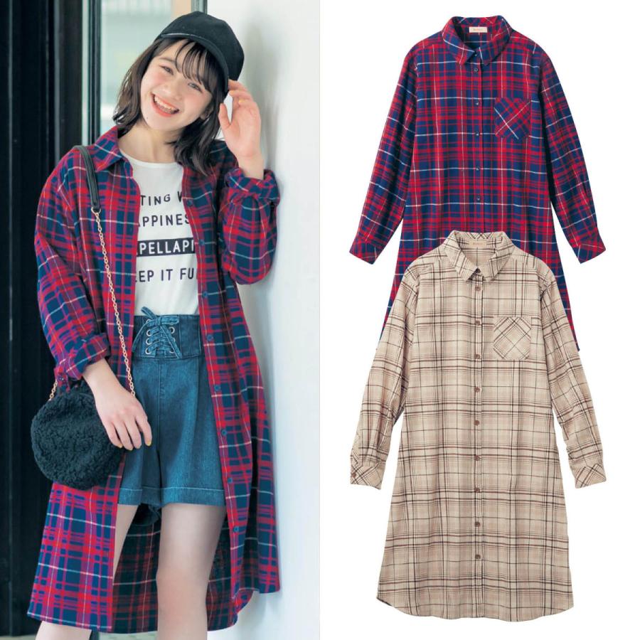 子供服 おしゃれ チュニック ワンピース ベルメゾン チェック柄シャツワンピース レッド系チェック ベルメゾン paypayモール店 通販 paypayモール