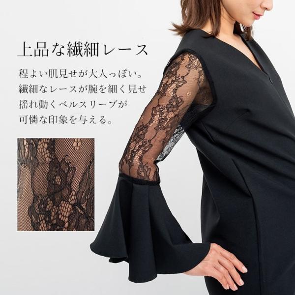 ベルスリーブレース使いvネックワンピースドレス 結婚式 二次会 お呼ばれ プチフォーマル対応 大きいサイズ