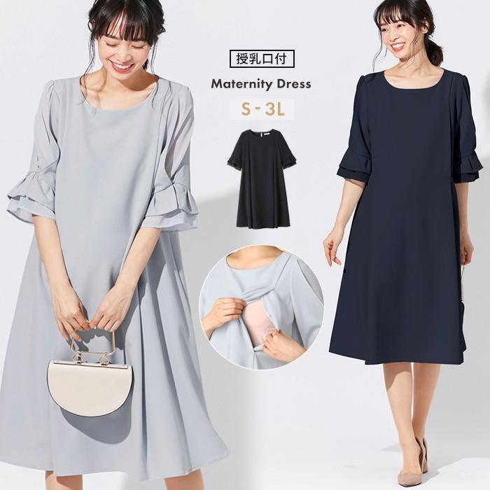 授乳服 マタニティ 服 ワンピース love mic 授乳口付 ストレッチジョーゼット タックベルスリーブワンピース 結婚式 お宮参り マタニティ授乳服ベビー angeliebe 通販 paypayモール