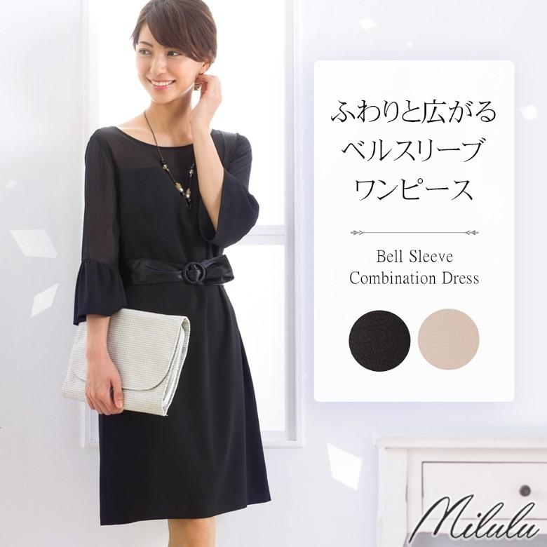ワンピース ベルスリーブ 7分袖 フォーマル 夏 レディース お呼ばれ パーティードレス 披露宴 結婚式 二次会 シンプル ボクシーシルエット モード スタイル m273169 milulu ミルル 通販 yahoo ショッピング