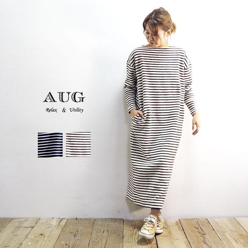aug オーグ ワンピース レディース ショコラボーダーワンピース 894401 ロングワンピース ロング 秋冬 長袖 長袖ワンピース 894401 headfootmixism 通販 yahoo ショッピング