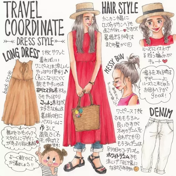 夏にぴったりな旅行コーデ 最小限の荷物で楽しむ着回しコーデ イラスト ローリエプレス