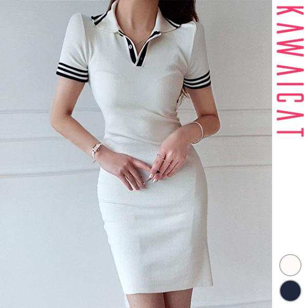 マルチカラーポロワンピース ワンピース レディース ポロワンピース カジュアル ビジュー付き ビジュー 襟付き 半袖 マルチカラー ミニ丈 ショート丈 タイト 韓国 オルチャン 韓国ファッション 新作 春夏 春 夏 ut 0689 musubi me 韓国 オルチャン