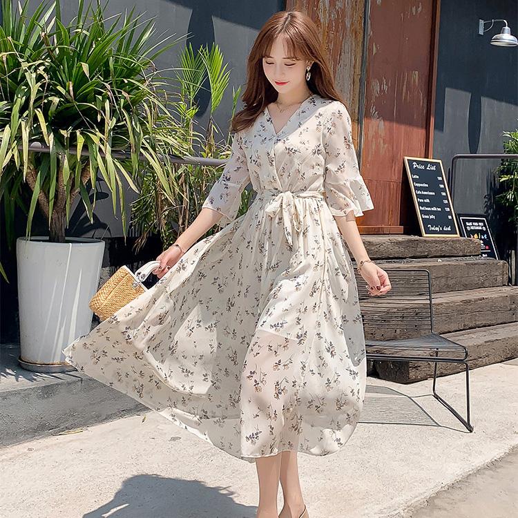 フェミニンで落ち着いた雰囲気があふれるマキシワンピース 送料無料 マキシワンピース ロングワンピース 花柄 vネック aライン フレア 半袖 春夏 リゾート マキシ丈 ロング レディース ビーチ マキシワンピ 袖あり 大きいサイズ シフォン カシュクール ティアード