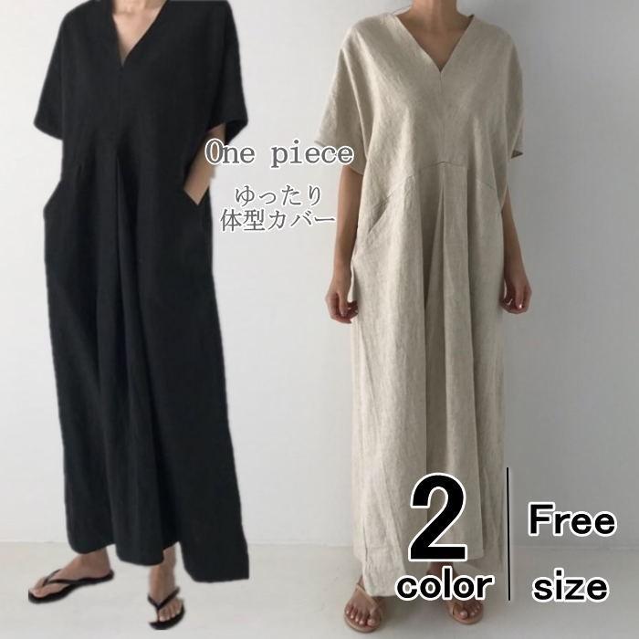マキシ ロング ワンピース 麻タッチ ロングワンピース マキシワンピース レディース シンプル 無地 韓国ファッション