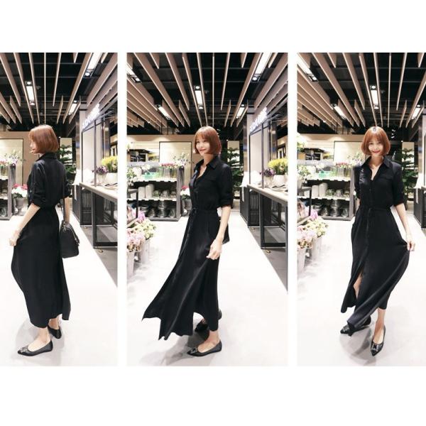マキシワンピース レディース ワンピース シャツワンピース マキシ丈ワンピース 黒 春新作 ロングワンピース