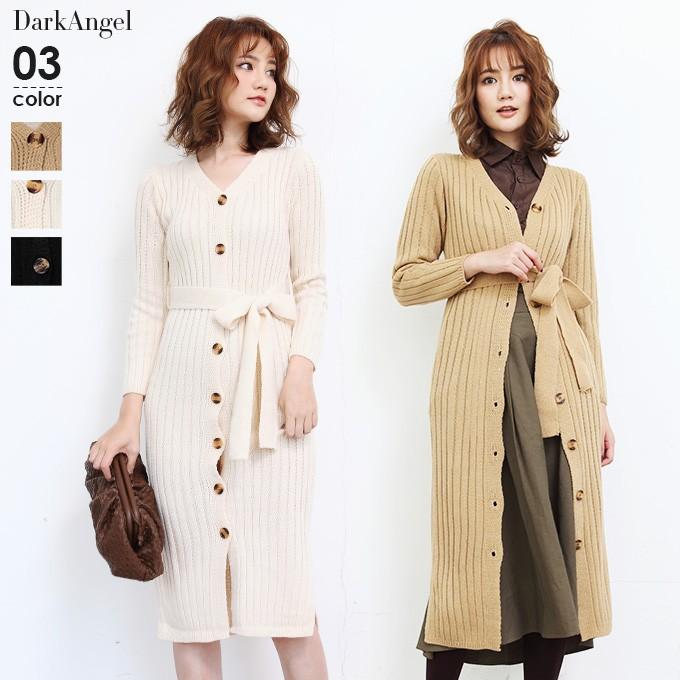 by リブvネックロングカーディガンワンピース ウォッシャブル 2way