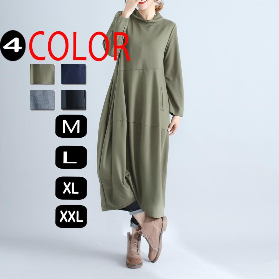 裏起毛であったかいマキシ丈ワンピース大きいサイズ