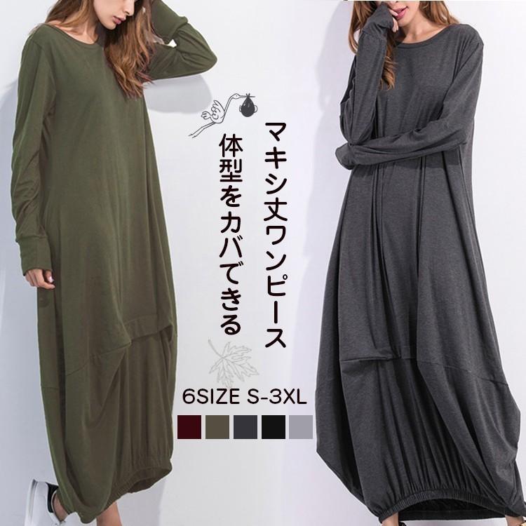 マキシ 丈 ワンピース 長袖