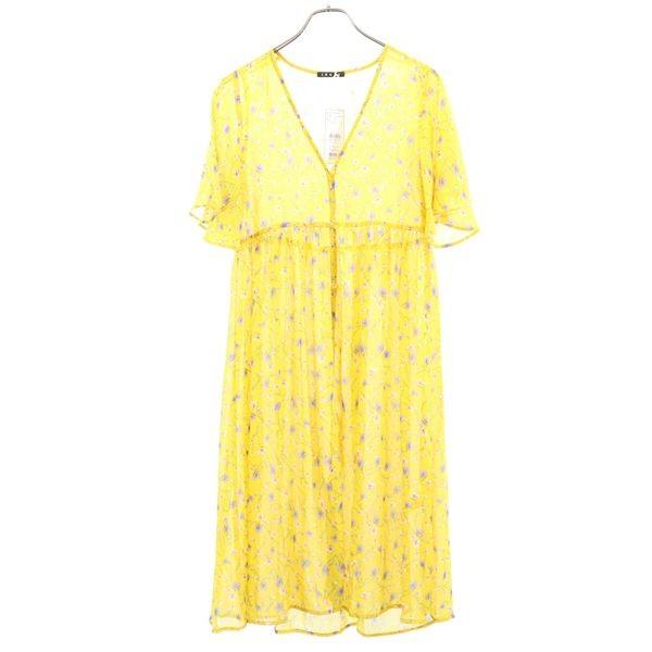 hotpingフロントボタンワンピース夏 マスタード ワンピース ノースリーブ