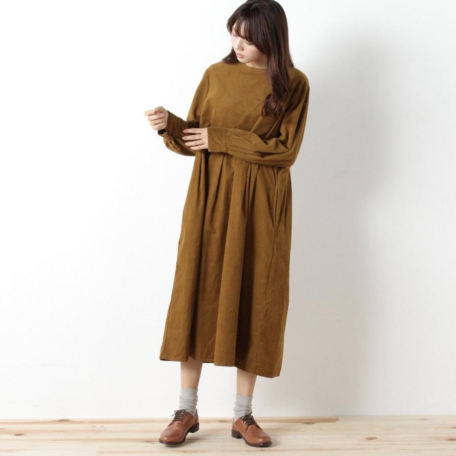 ワンピース チュニック レディース コーデュロイ後ろ釦ワンピース マスタード ベルメゾン paypayモール店 通販 paypayモール