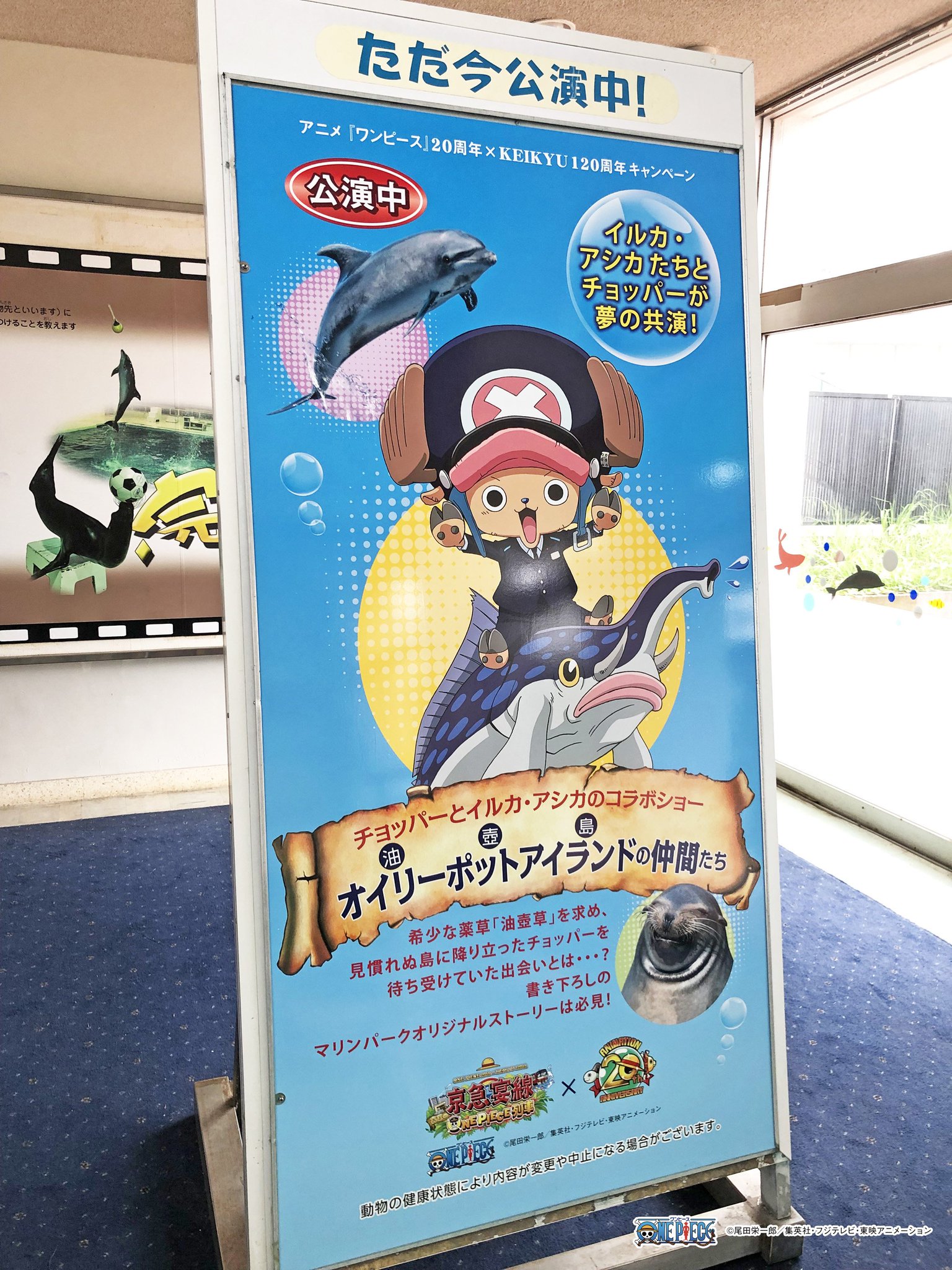 京急油壺マリンパーク公式アカウント on twitter 7 12よりアニメ ワンピース 20周年を記念したコラボイベントを開催中 チョッパーとイルカ アシカが共演するパフォーマンスや 魚人 人魚のモデルとなった生物の特別展など マリンパークならではの特別企画を実施中