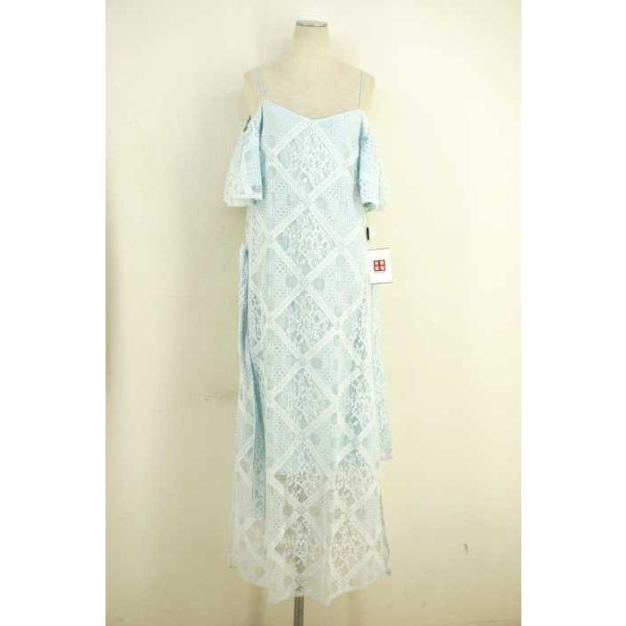 マーキュリーデュオ mercuryduo ロング ワンピース レース 切替 ノースリーブ フレア オフホワイト f レディース