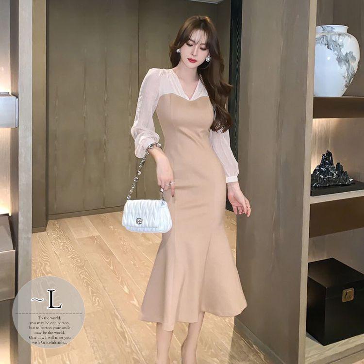 デートや同伴に パフスリーブがおしゃれなマーメイドスカートのタイトワンピース