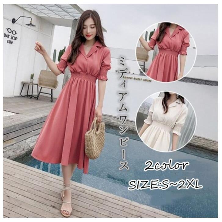 コットンワンピース バックセパレート レディースワンピ 春夏カラー ミモレ丈 お出かけワンピース 韓国ファッション 半袖 可愛い k0288 shopmall to you powered by base