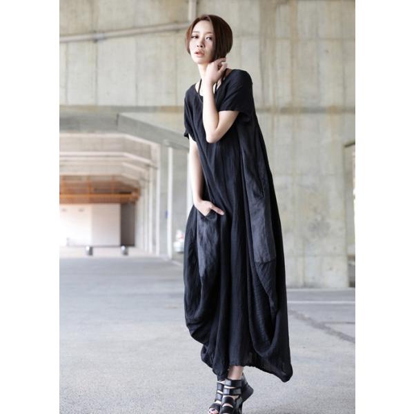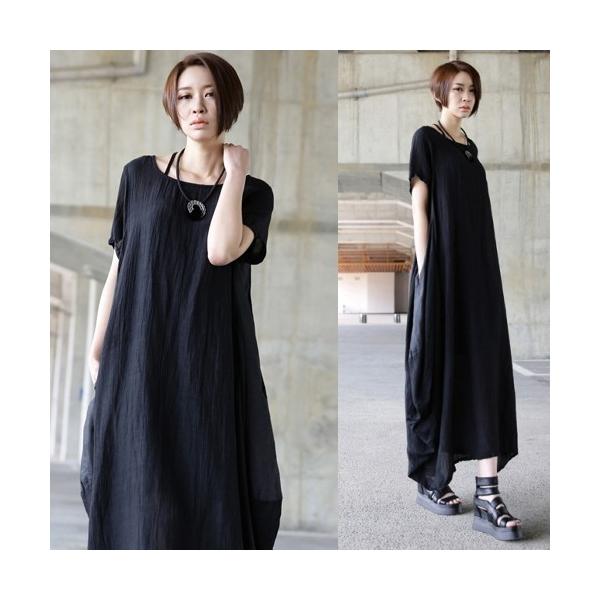 夏の新作ロングワンピース レディース モード系 半袖 個性的 パーカー モード系 大きいサイズ 黒 ブラック ロング丈 ワンピース aライン モード系 アシメ ロング