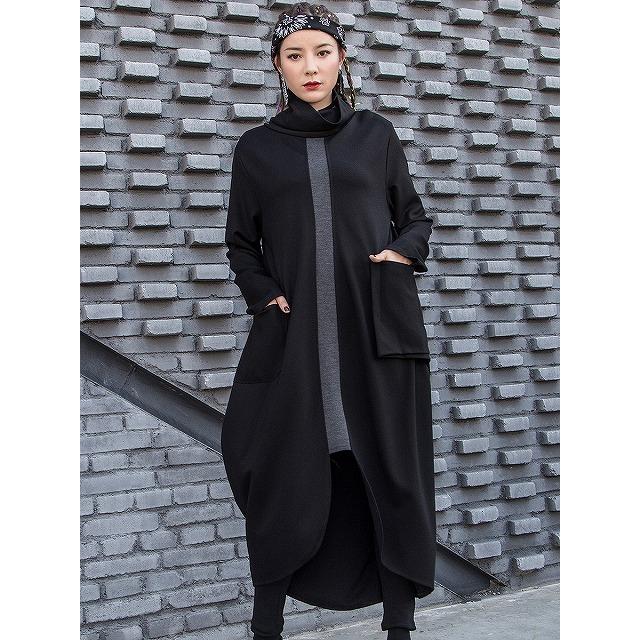 モード系 ワンピース ハイネック zipアップ 大人きれいめ キレカジ ミモレ丈 黒 原宿系 20代 30代 dressyなファッション モード ゴスロリのお店 ladies fashion seasonz