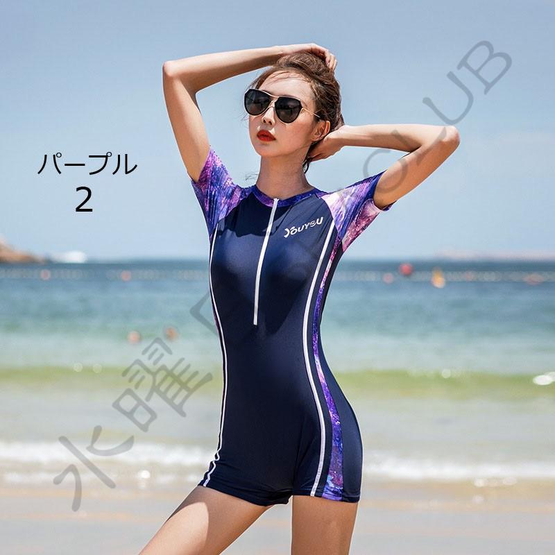 axesea新長袖ラッシュガードワンピース水着女性ダイビングサーフ水着upf50 フロントジッパーuvパッチワークラッシュガード