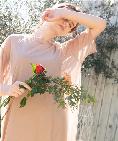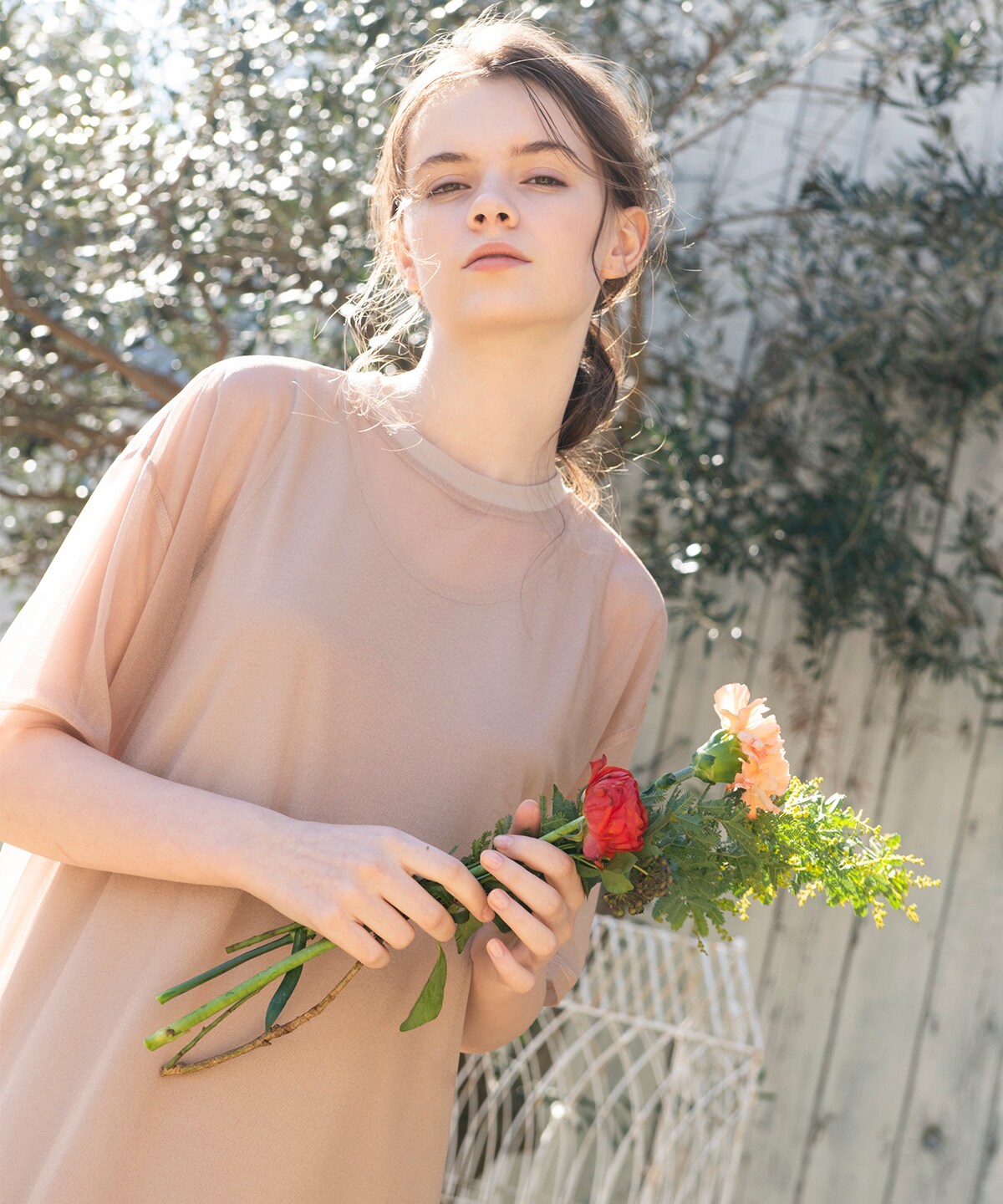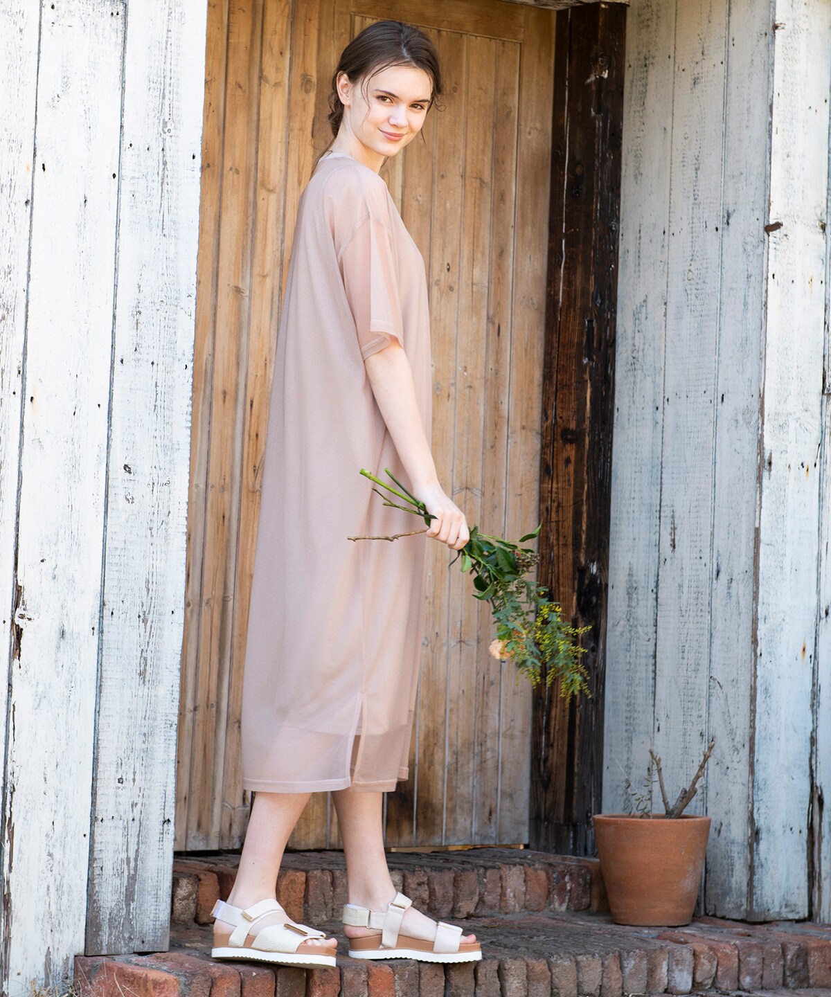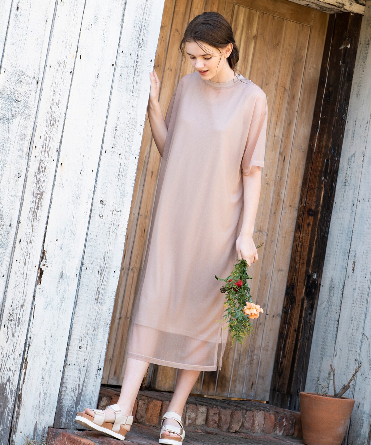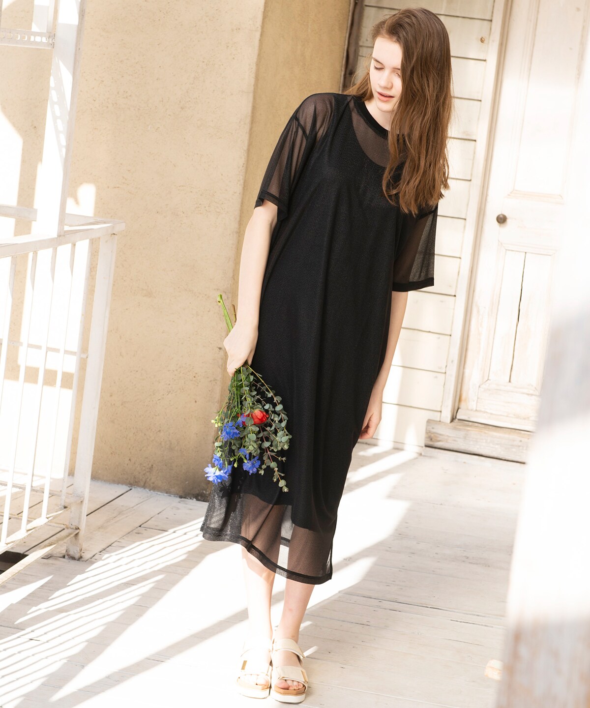 シースルーとラメ入りワンピースのセットアップ パーティードレス