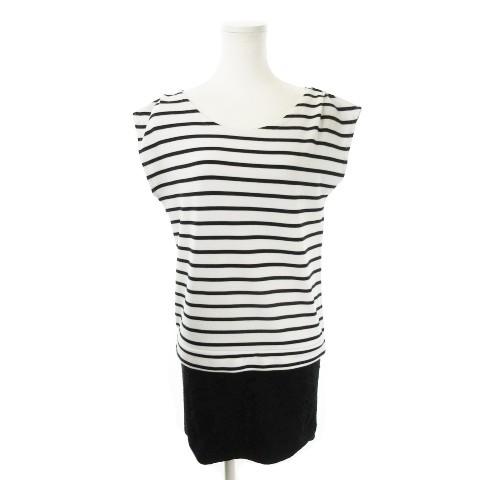 未使用品 リエンダ rienda ボーダー調 ニット ワンピース m 黒xオフホワイト 長袖 裏地付き タンクトップ裏地 レディース