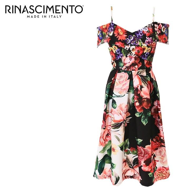 リナシメント rinascimento フラワープリントフリルショルダーミディアムワンピース le dione ルディオーネ ドレスショップ