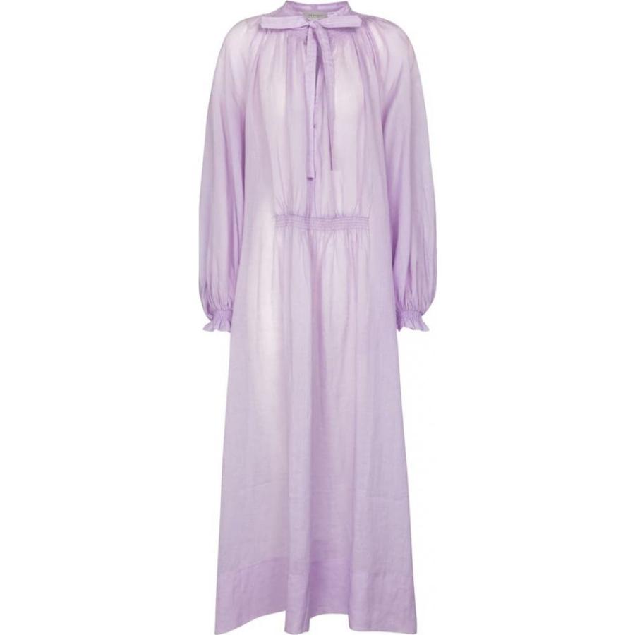 安い 受注 リネン100 バルーン袖 バックリボン リネンワンピース アンティークモーブ derbus online de