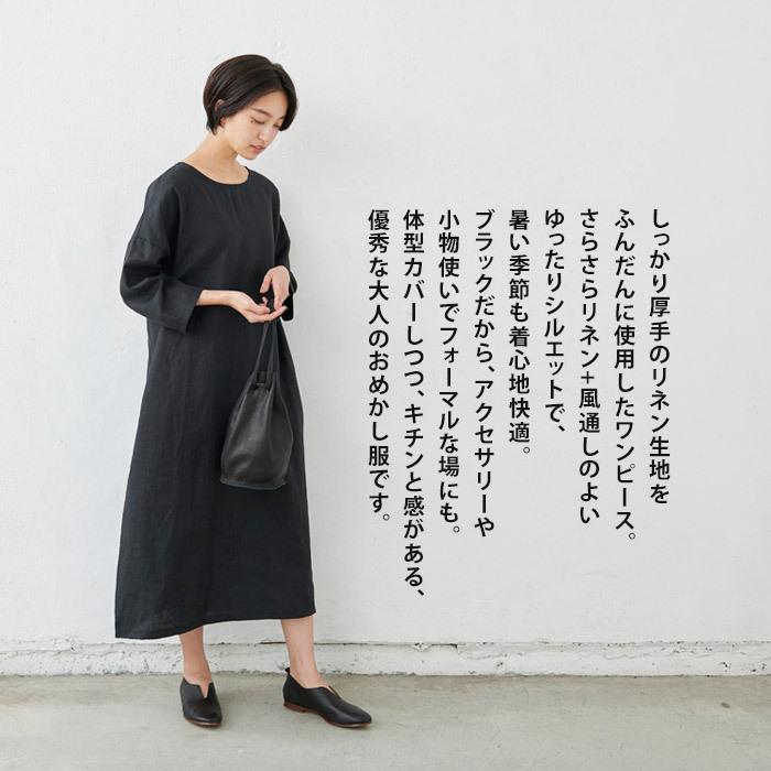 ベルギーリネン生地のクラシックワンピース ブラック f
