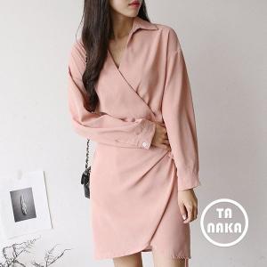 シャツワンピース ロング丈 長袖 春 韓国 ファッション レディース シャツワンピ アシンメトリー フレア リボン ハイウエスト 無地 カジ au pay マーケット